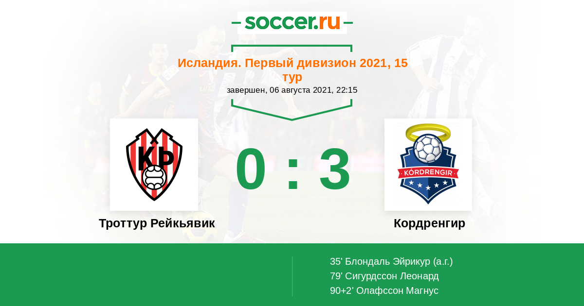 | Троттур Рейкьявик | 1:2 | 0:0 | 1:2 |