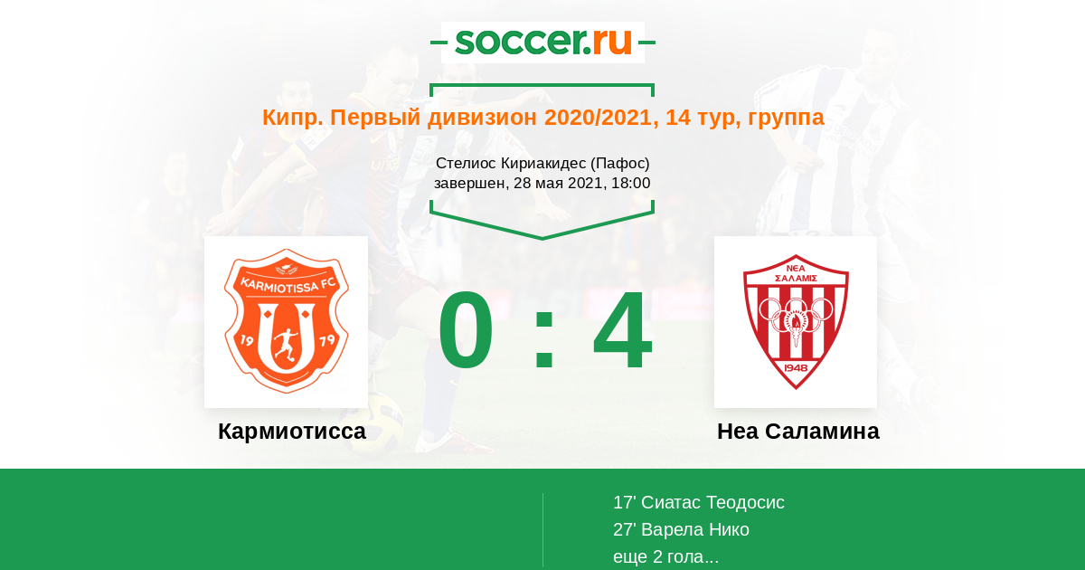 | Кипр. Первый Дивизион | 18 | 4 | 10 | 4 |