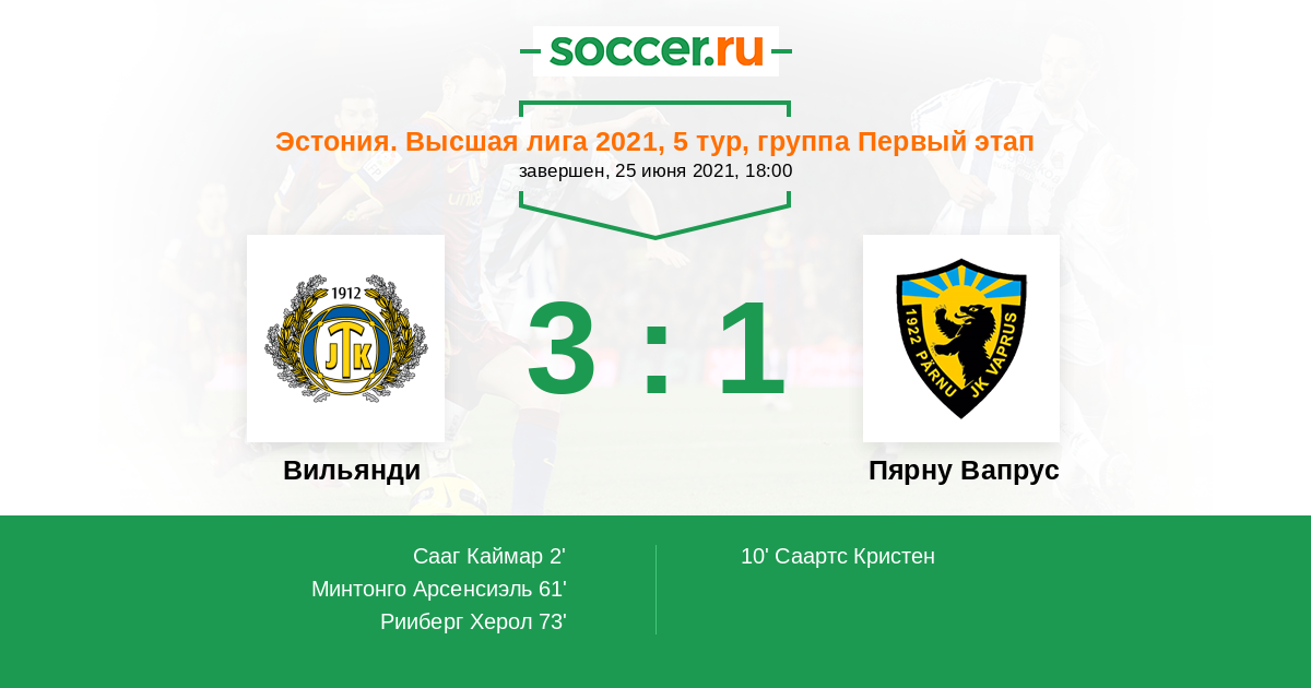 | Вильянди | 10:7 | 4:2 | 6:5 |