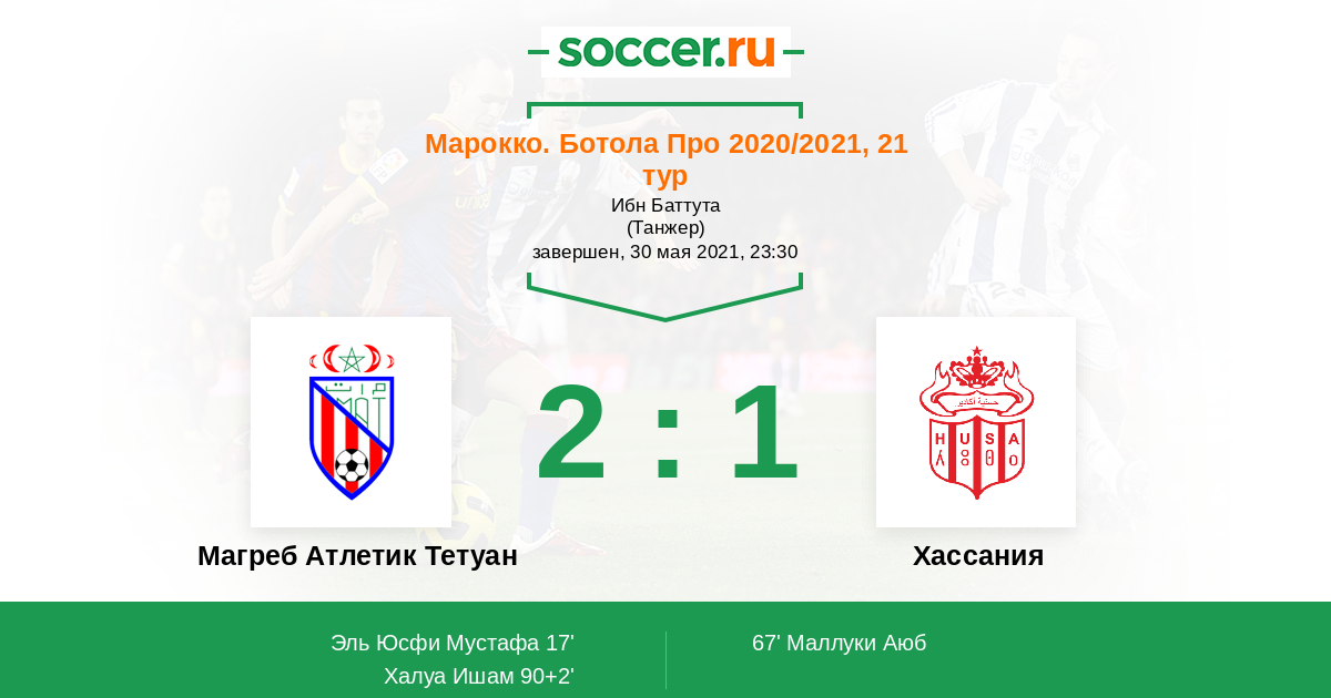 | Магреб Атлетик Тетуан | 35:40 | 16:22 | 19:18 |