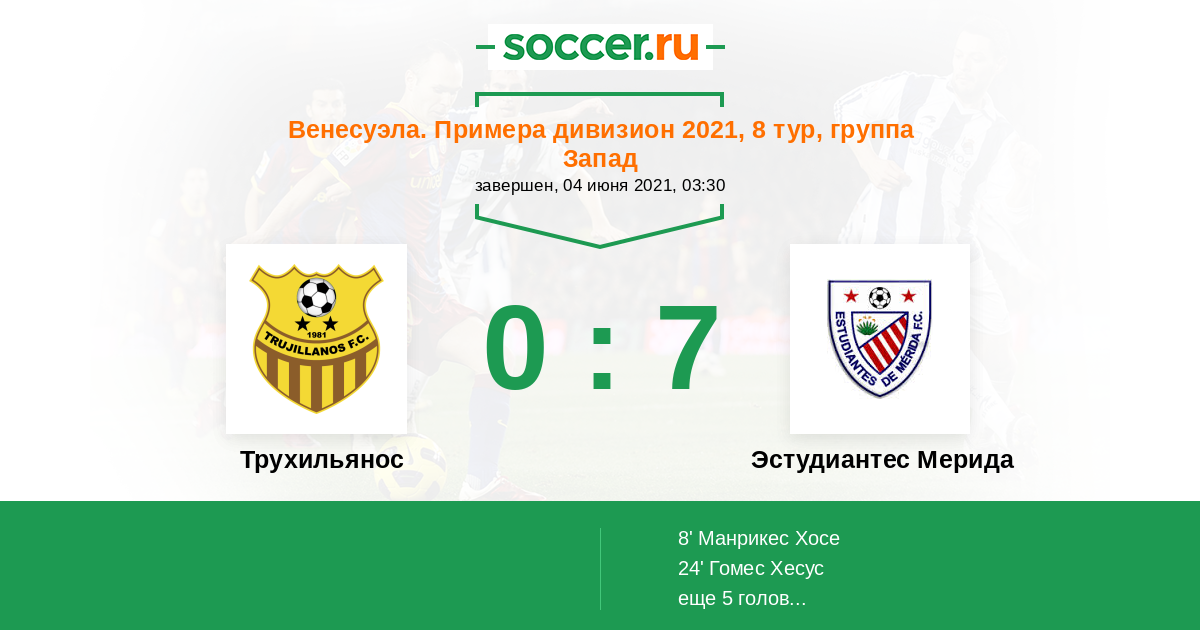 | Эстудиантес Мерида | 47:49 | 29:17 | 18:32 |
