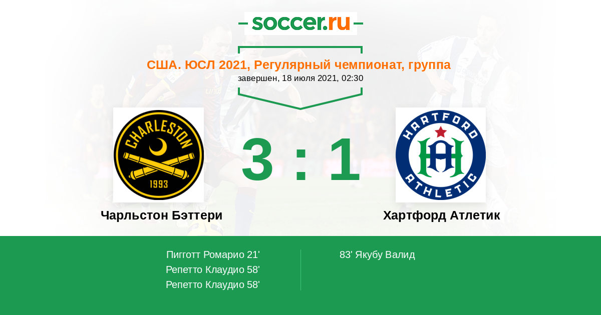 | Чарльстон Бэттери | Хартфорд Атлетик | |