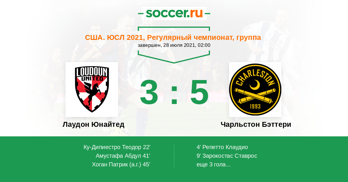 | Лаудон Юнайтед | Чарльстон Бэттери | |