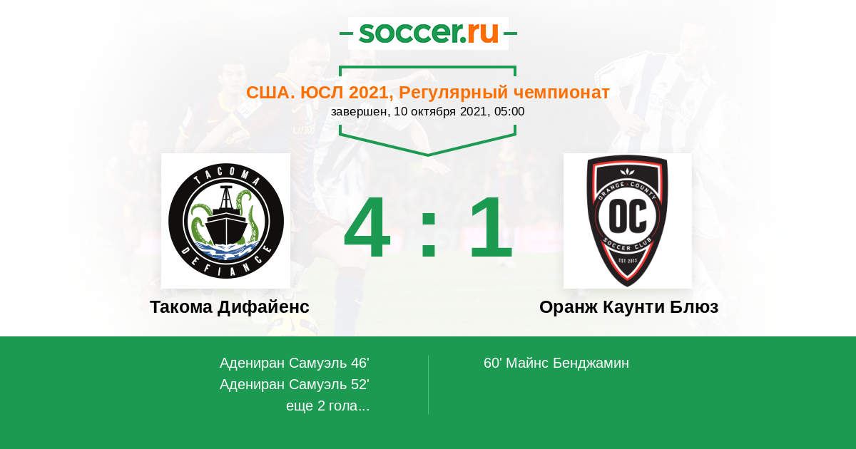 | Такома Дифайенс | Оранж Каунти Блюз | |