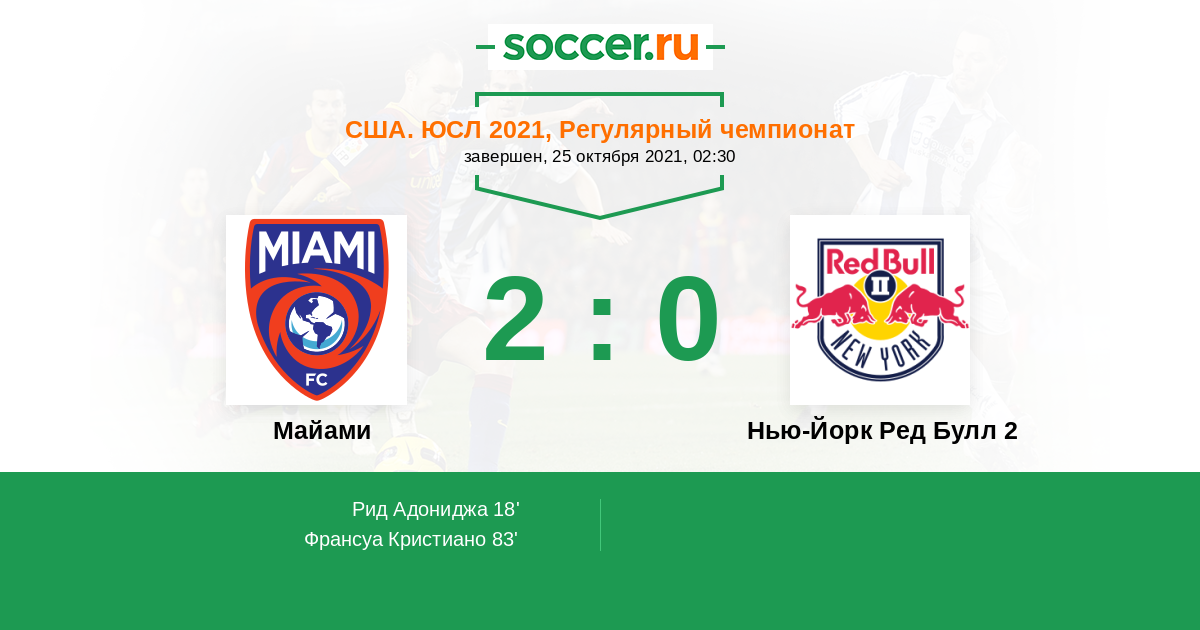 | Майами | Нью-Йорк Ред Булл 2 | |