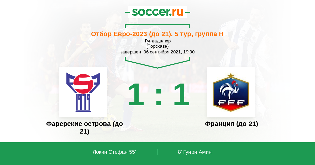 | Фарерские острова (до 21) | Франция (до 21) | |