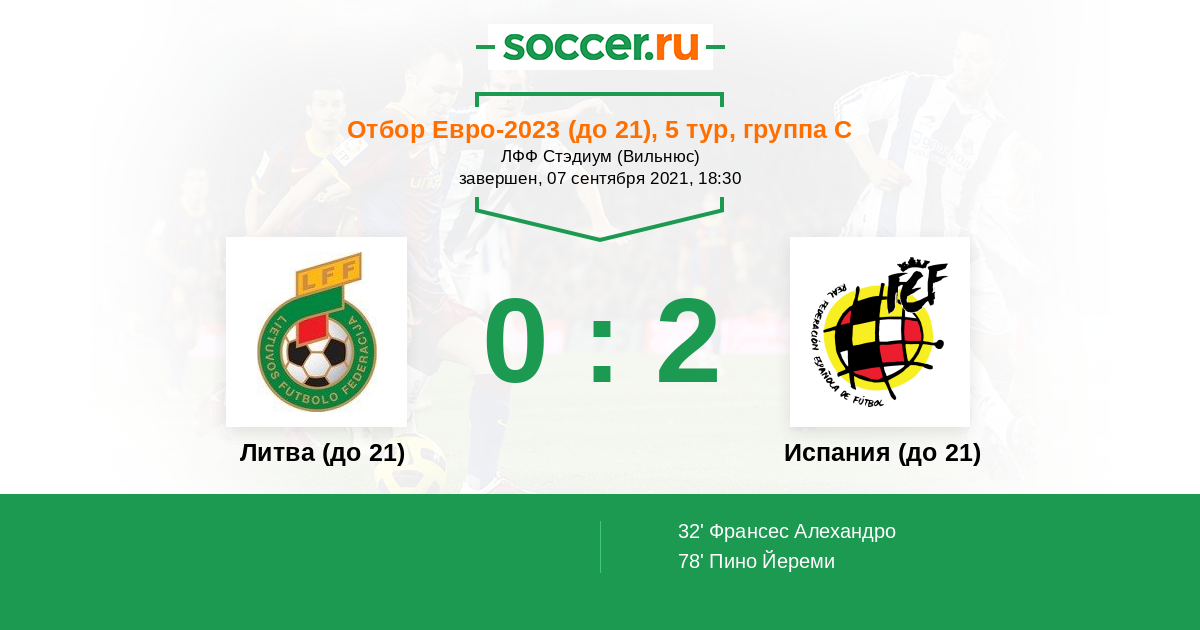 | Литва (до 21) | 0:8 | 0:0 | 0:8 |