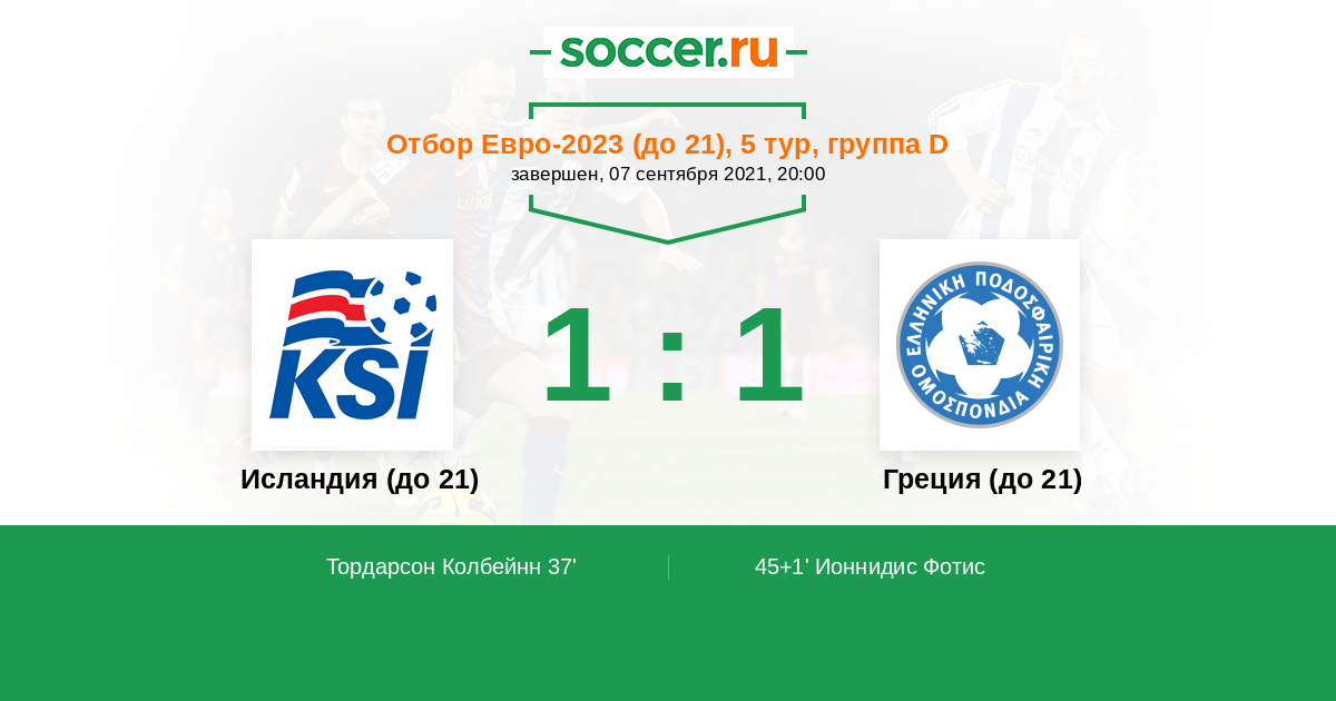 | Исландия (до 21) | 0:1 | 0:0 | 0:1 |