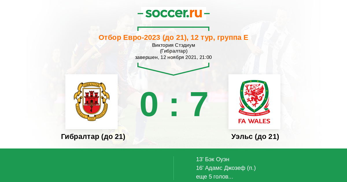 | Гибралтар (до 21) | Уэльс (до 21) | |