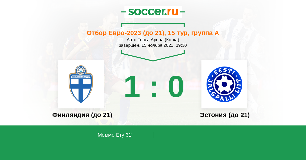 | Финляндия (до 21) | Эстония (до 21) | |