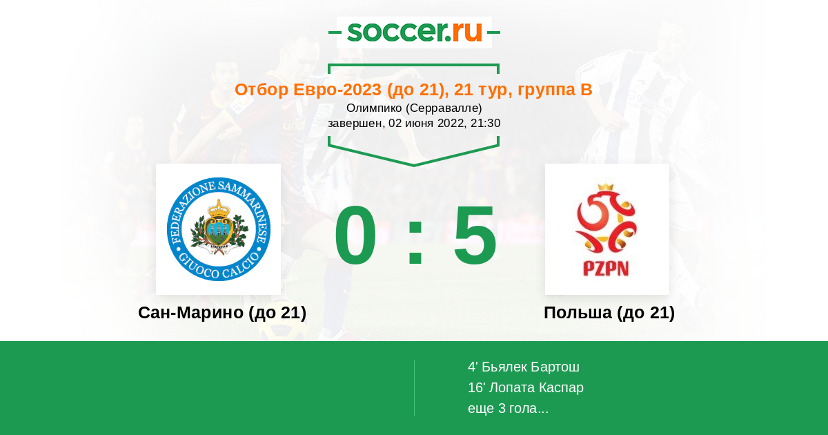| Сан-Марино (до 21) | Польша (до 21) | |