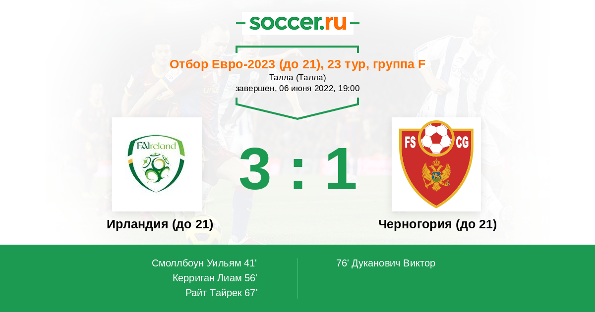 | Черногория (до 21) | 2:1 | 2:1 | 0:0 |