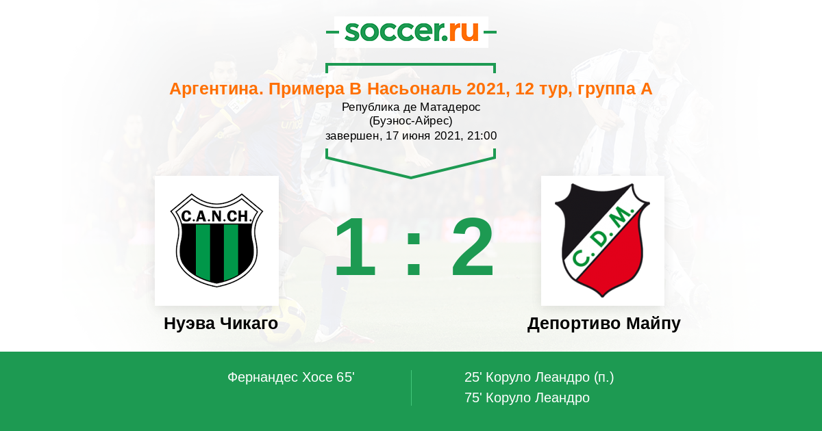 | Нуэва Чикаго | 2:1 | 0:0 | 2:1 |