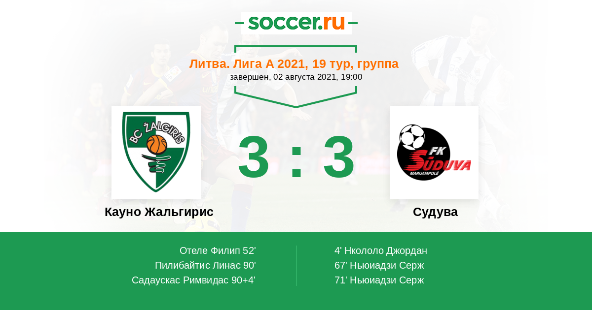 | Кауно Жальгирис | Судува | |