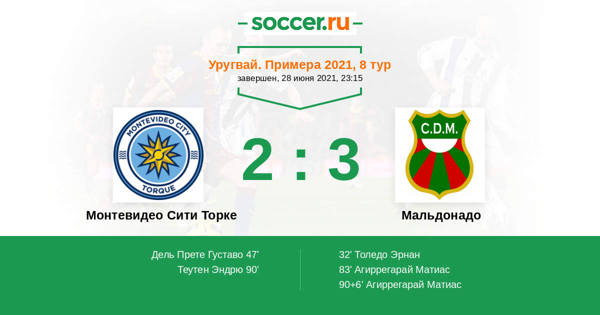| Монтевидео Сити Торке | 30:26 | 18:11 | 12:15 |