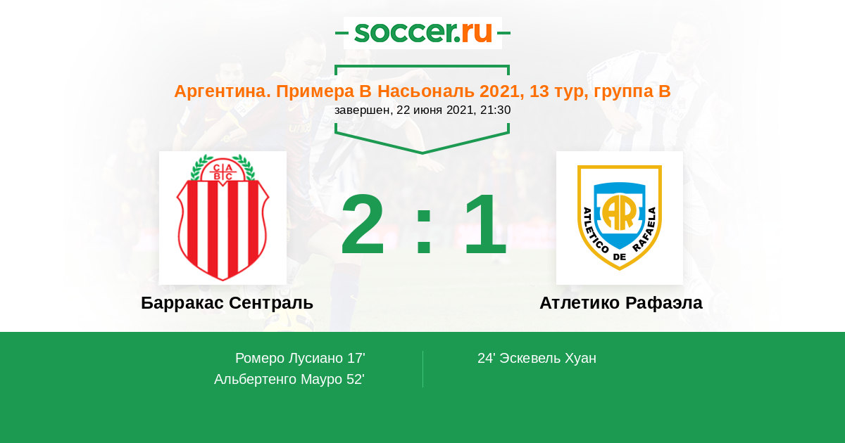 | Барракас Сентраль | Атлетико Рафаэла | |