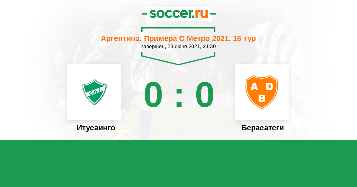 | Аргентина. Примера С Метро | 13 | 6 | 1 | 6 |