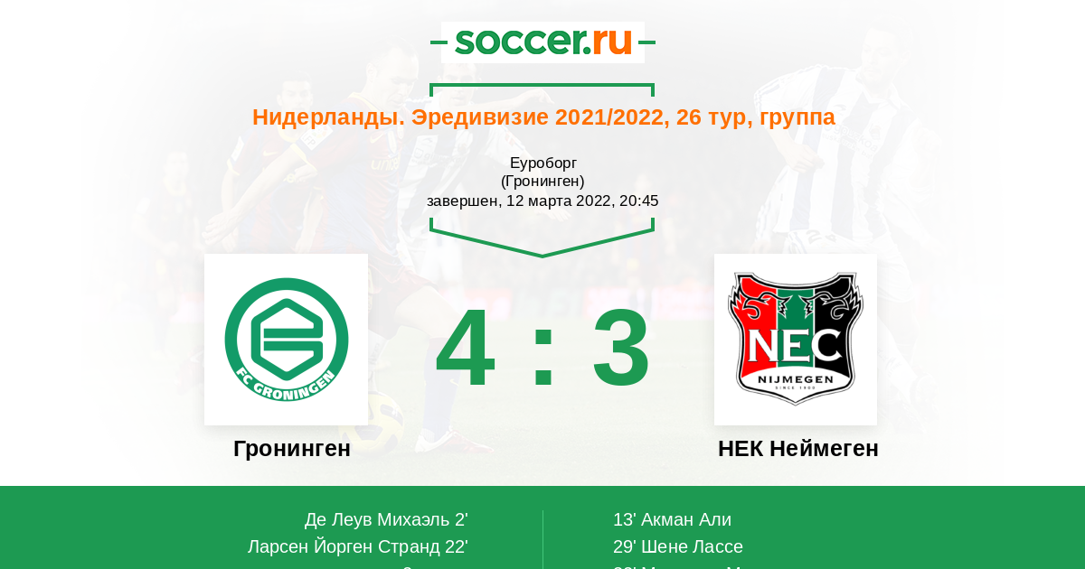 | Гронинген | НЕК Неймеген | |