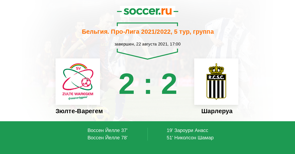 | Зюлте-Варегем | Шарлеруа | |
