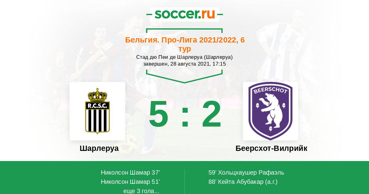 | Шарлеруа | Беерсхот-Вилрийк | |