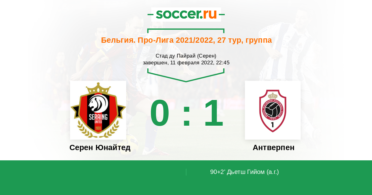 | Антверпен | 17:7 | 12:6 | 5:1 |