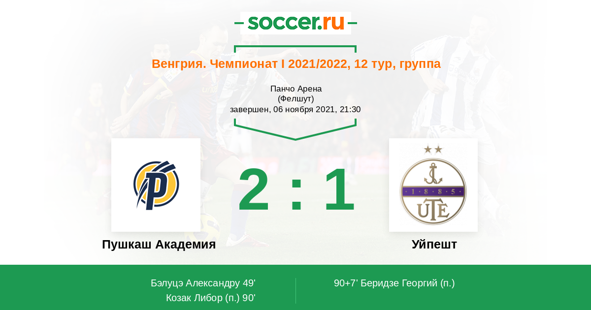 | Пушкаш Академия | 61:51 | 28:27 | 33:24 |