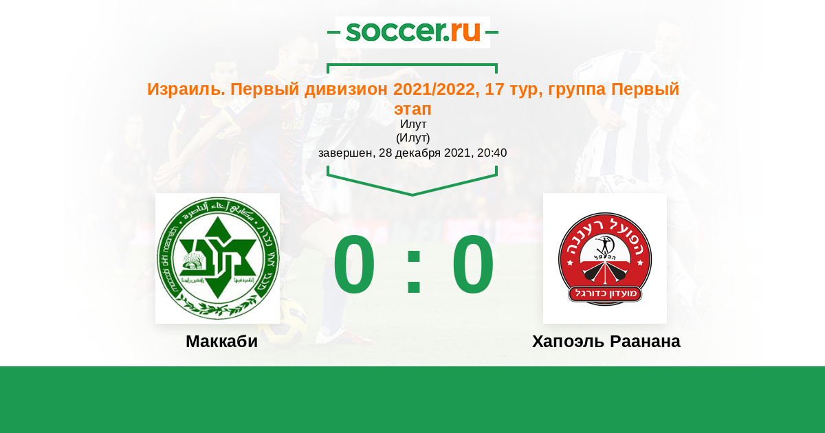 | Хапоэль Раанана | 42:37 | 20:13 | 22:24 |