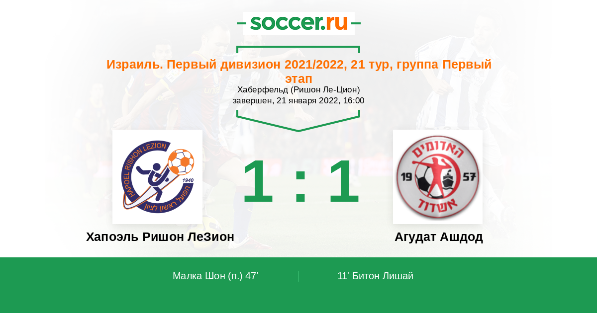 | Хапоэль Ришон ЛеЗион | Агудат Ашдод | |