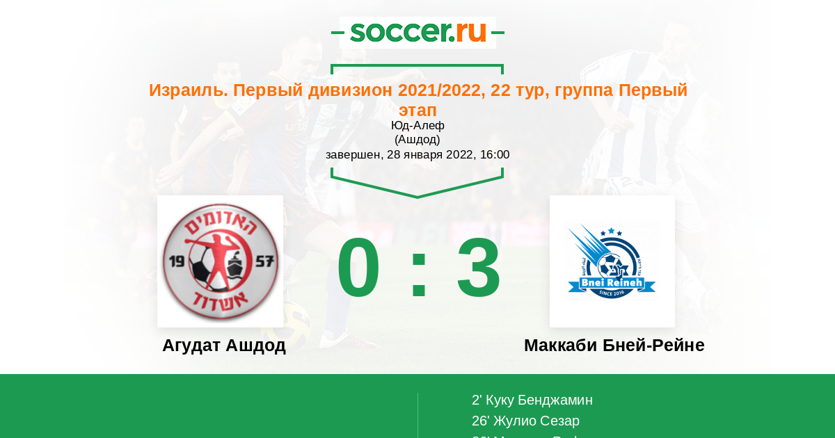 | Агудат Ашдод | Маккаби Бней-Рейне | |
