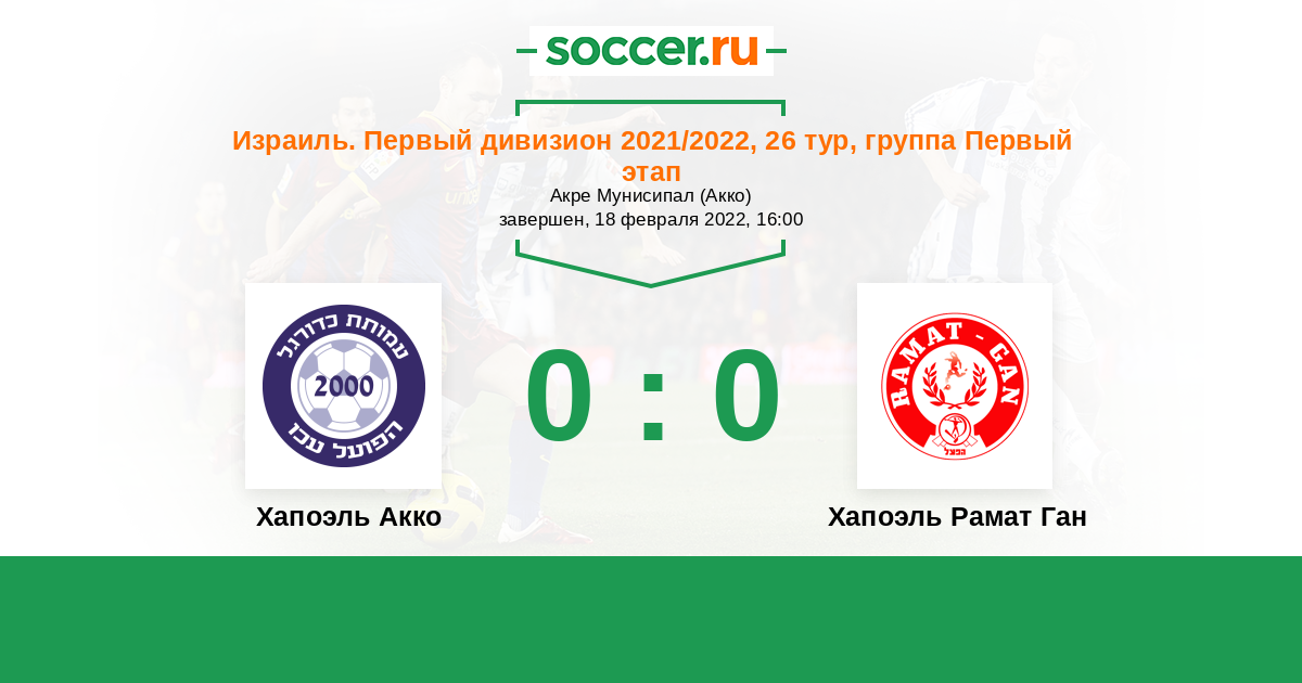 | Хапоэль Акко | Хапоэль Рамат Ган | |