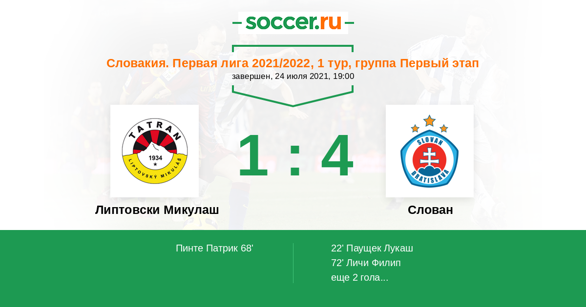 | Липтовски Микулаш | 1:11 | 1:5 | 0:6 |