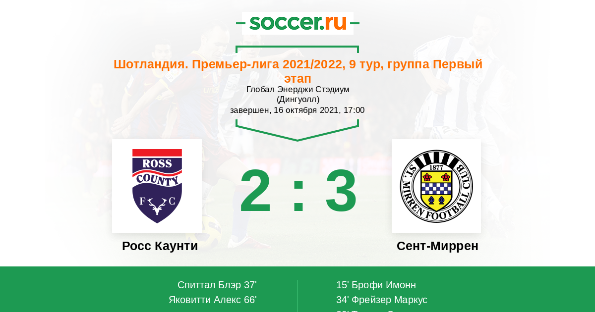 | Сент-Миррен | 64:57 | 36:25 | 28:32 |