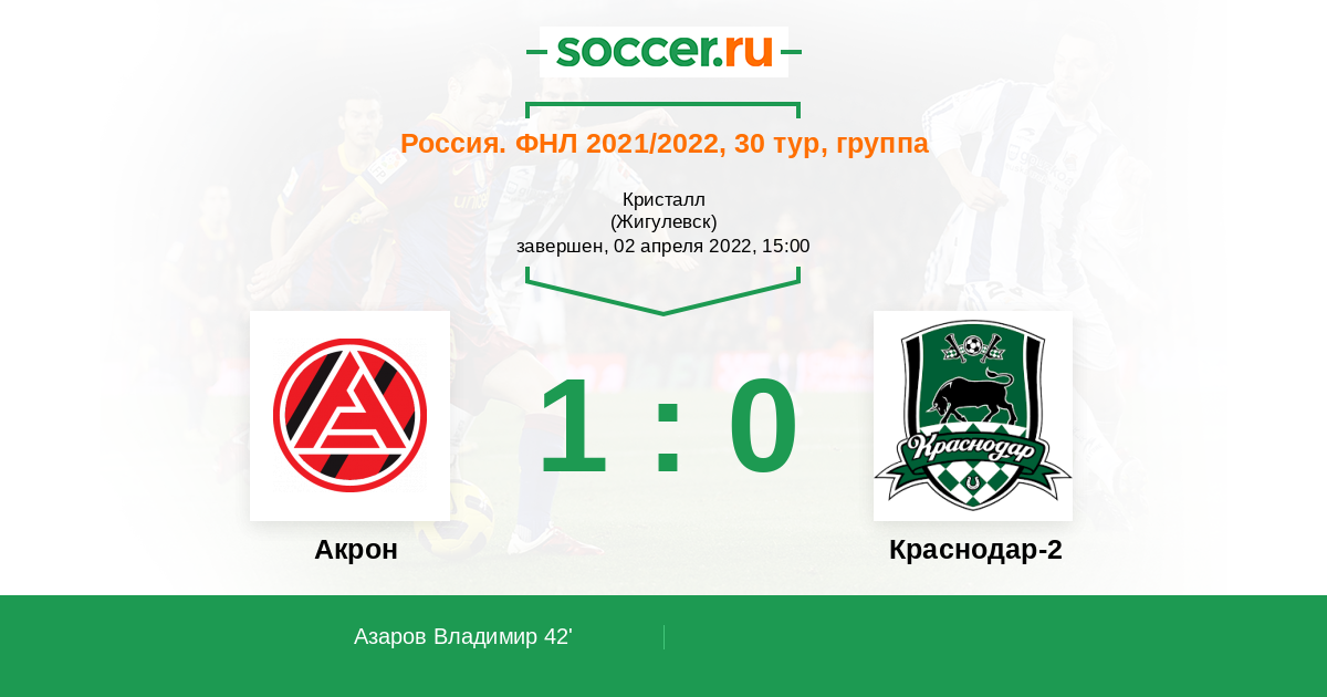 | Акрон | 3:3 | 1:0 | 2:3 |