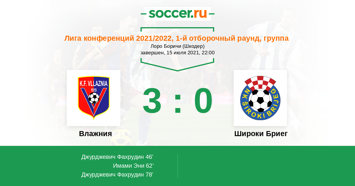 | Широки Бриег | 3:1 | 3:1 | 0:0 |