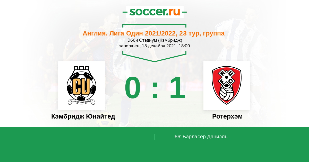 | Кэмбридж Юнайтед | 17:24 | 13:7 | 4:17 |