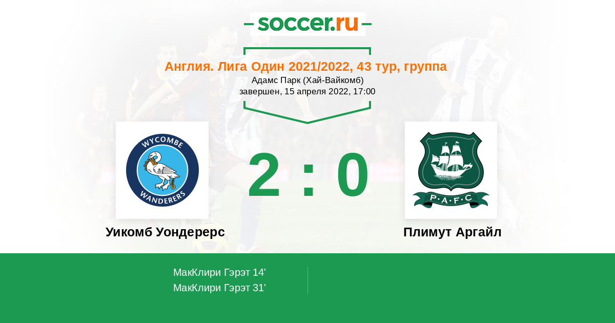 | Уикомб Уондерерс | Плимут Аргайл | |