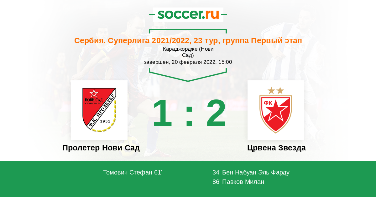 | Пролетер Нови Сад | Црвена Звезда | |