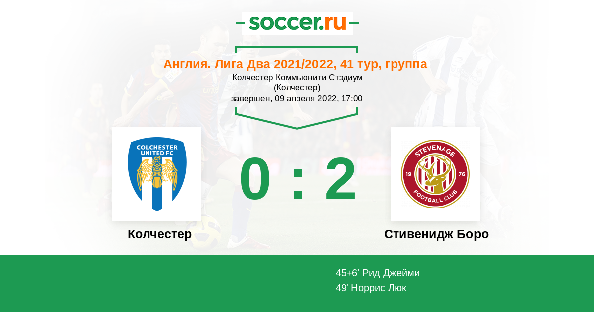 | Колчестер | Стивенидж Боро | |