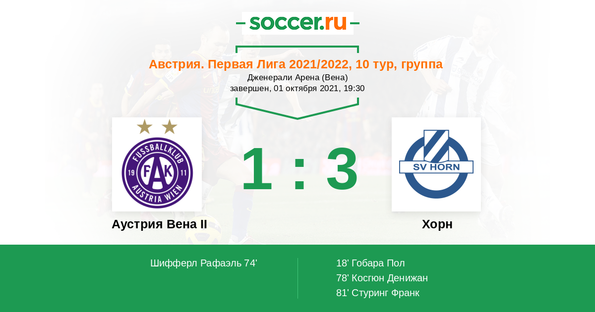 | Аустрия Вена II | 28:41 | 13:21 | 15:20 |