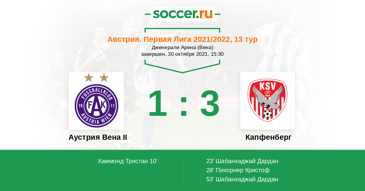 | Аустрия Вена II | 32:39 | 21:21 | 11:18 |