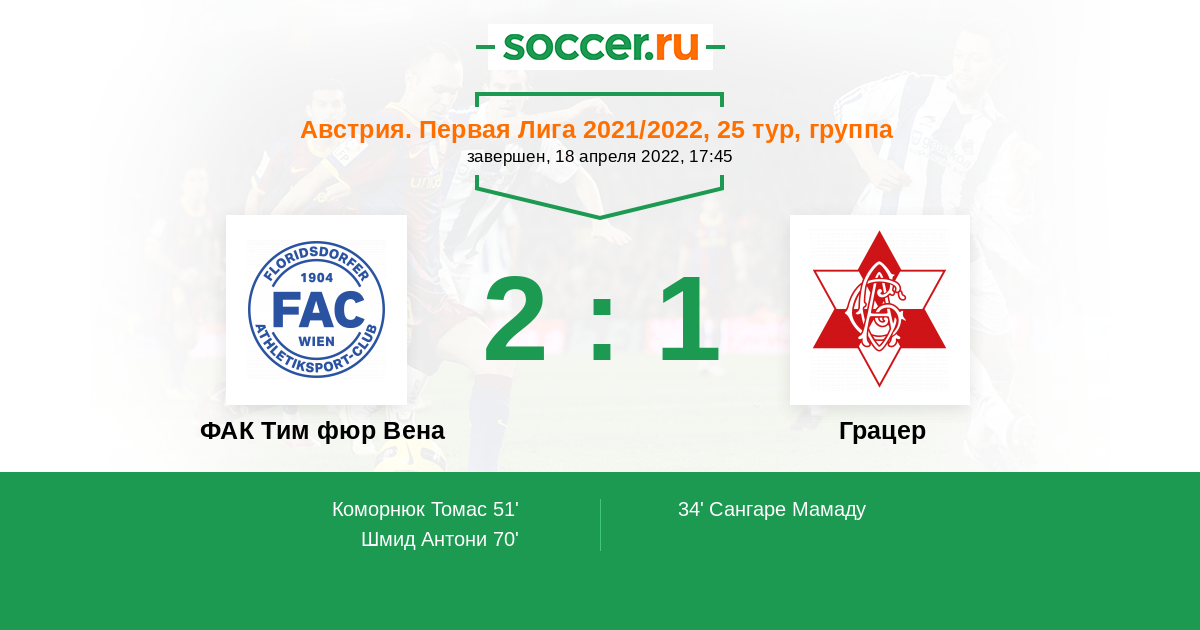 Последние 5 игр на выезде ФАК Тим фюр Вена
