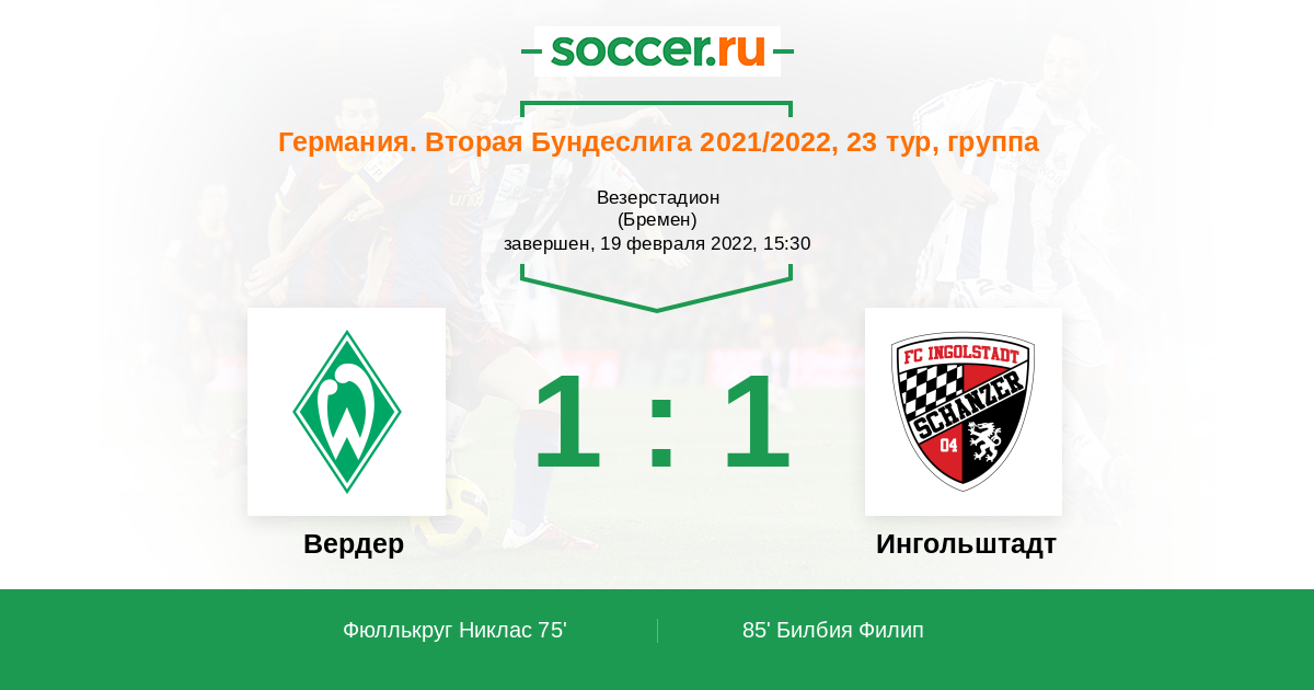 | Вердер | 10:6 | 3:2 | 7:4 |