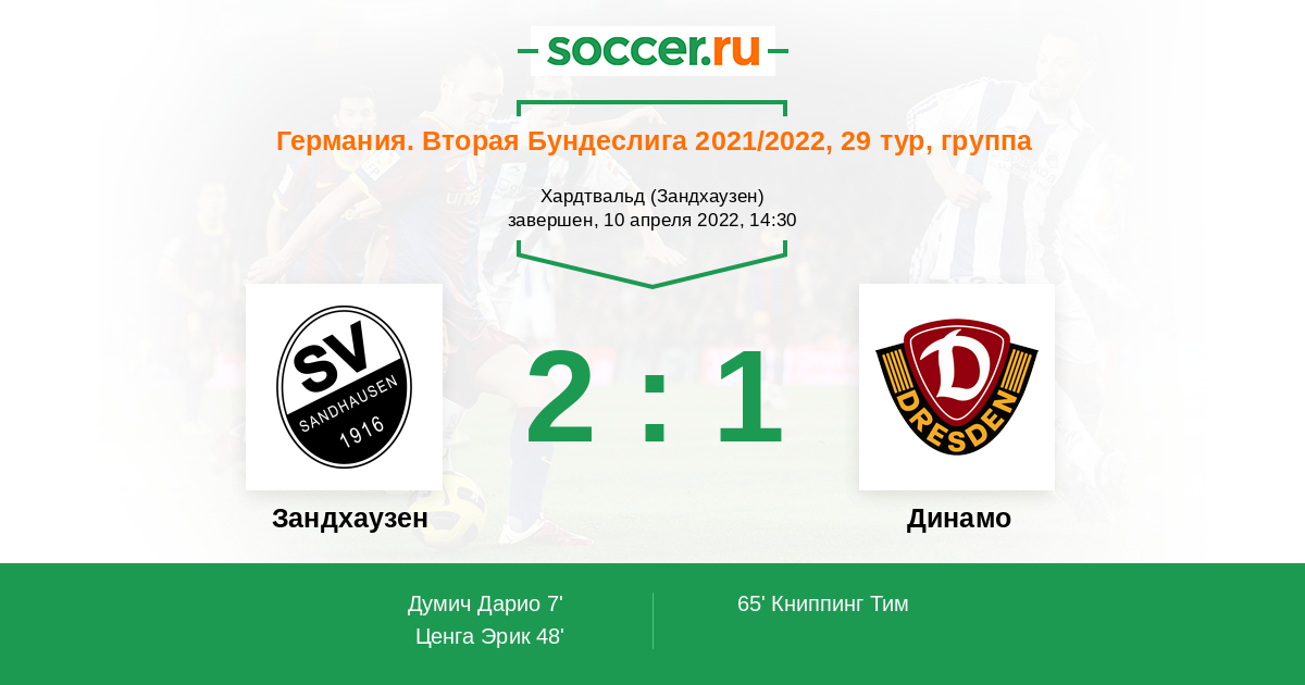 | Зандхаузен | 31:25 | 16:10 | 15:15 |