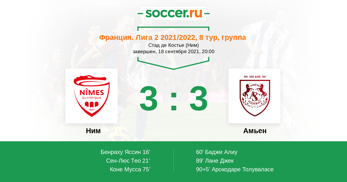| Амьен | 22:21 | 14:6 | 8:15 |