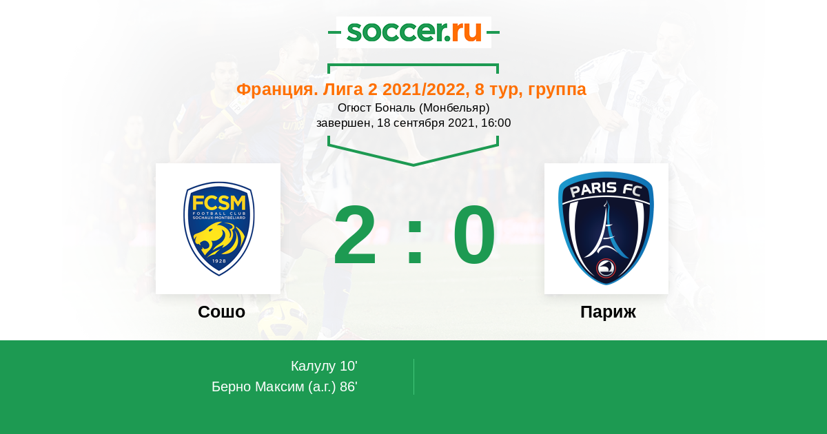 | Франция. Лига 2 | 14 | 3 | 4 | 7 |