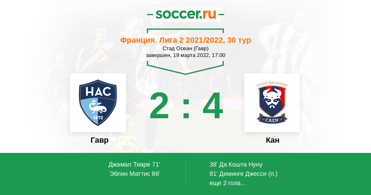 | Гавр | 52:42 | 31:19 | 21:23 |