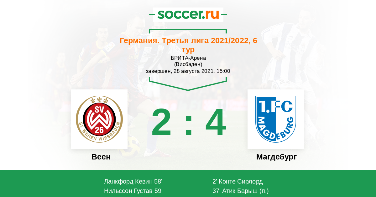 | Магдебург | 12:6 | 6:3 | 6:3 |