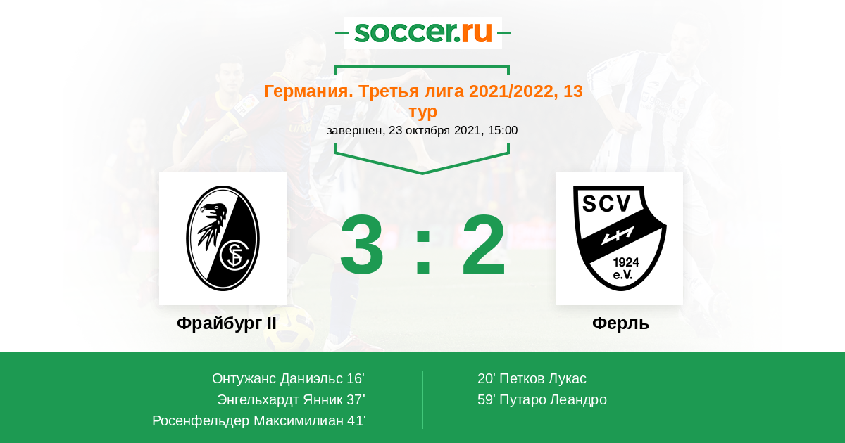 | Фрайбург II | 6:9 | 1:2 | 5:7 |