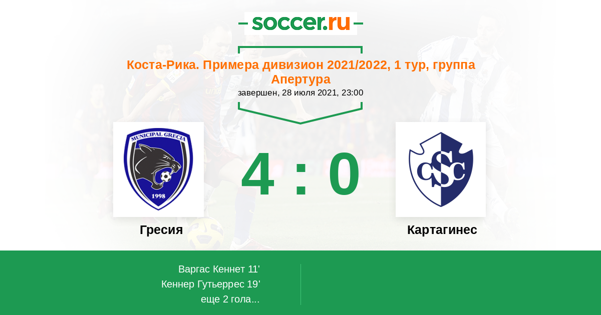 | Коста-Рика. Примера дивизион | 26 | 4 | 14 | 8 |