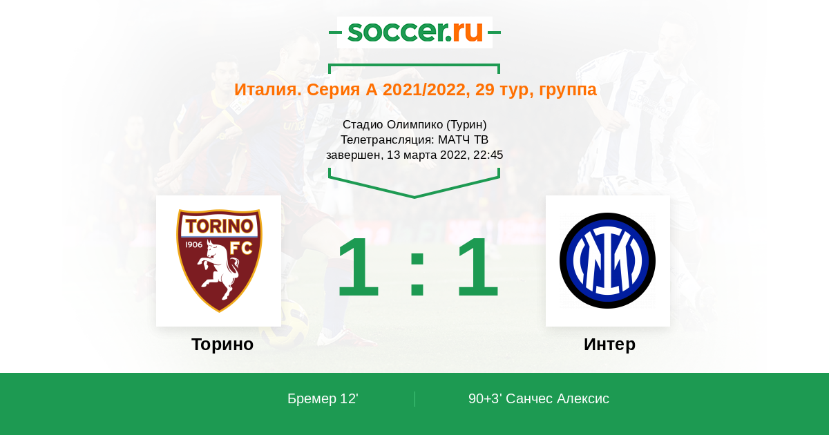 Турин, Стадио Олимпико, зрителей: 15363 Телетрансляция: МАТЧ ТВ